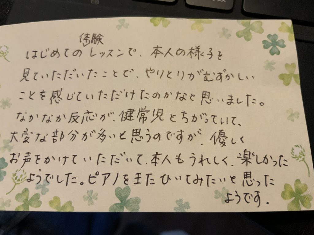 ピアノが大好きな男の子のピアノレッスンでの体験レッスンでした。