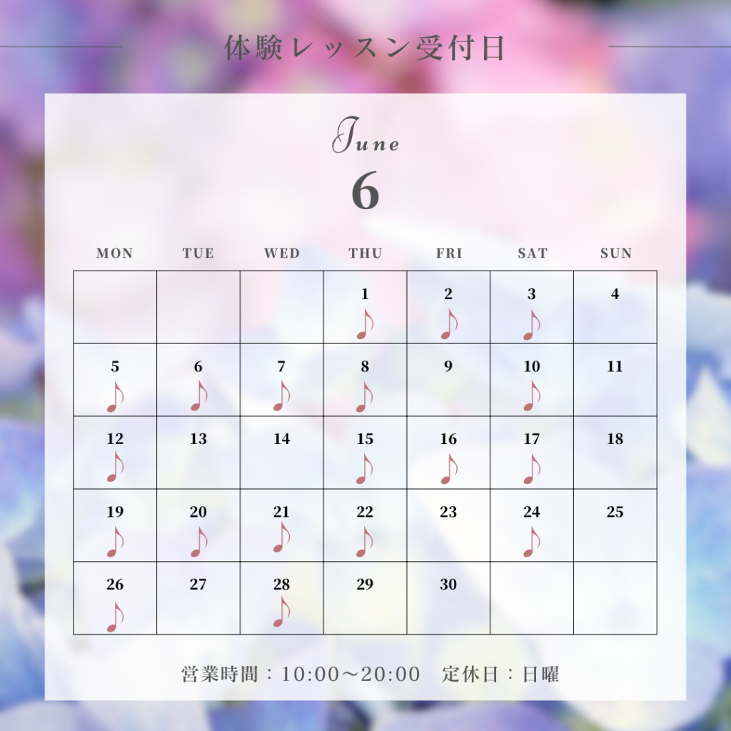 【6月体験レッスン受付日】