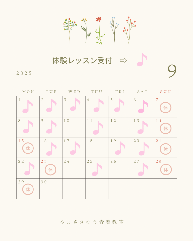 【9月・10月体験レッスンスケジュール】
