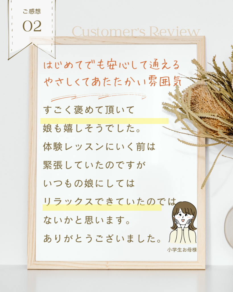 〜体験レッスンを実際に受けられた方のご感想〜いくつかご紹介いたします。